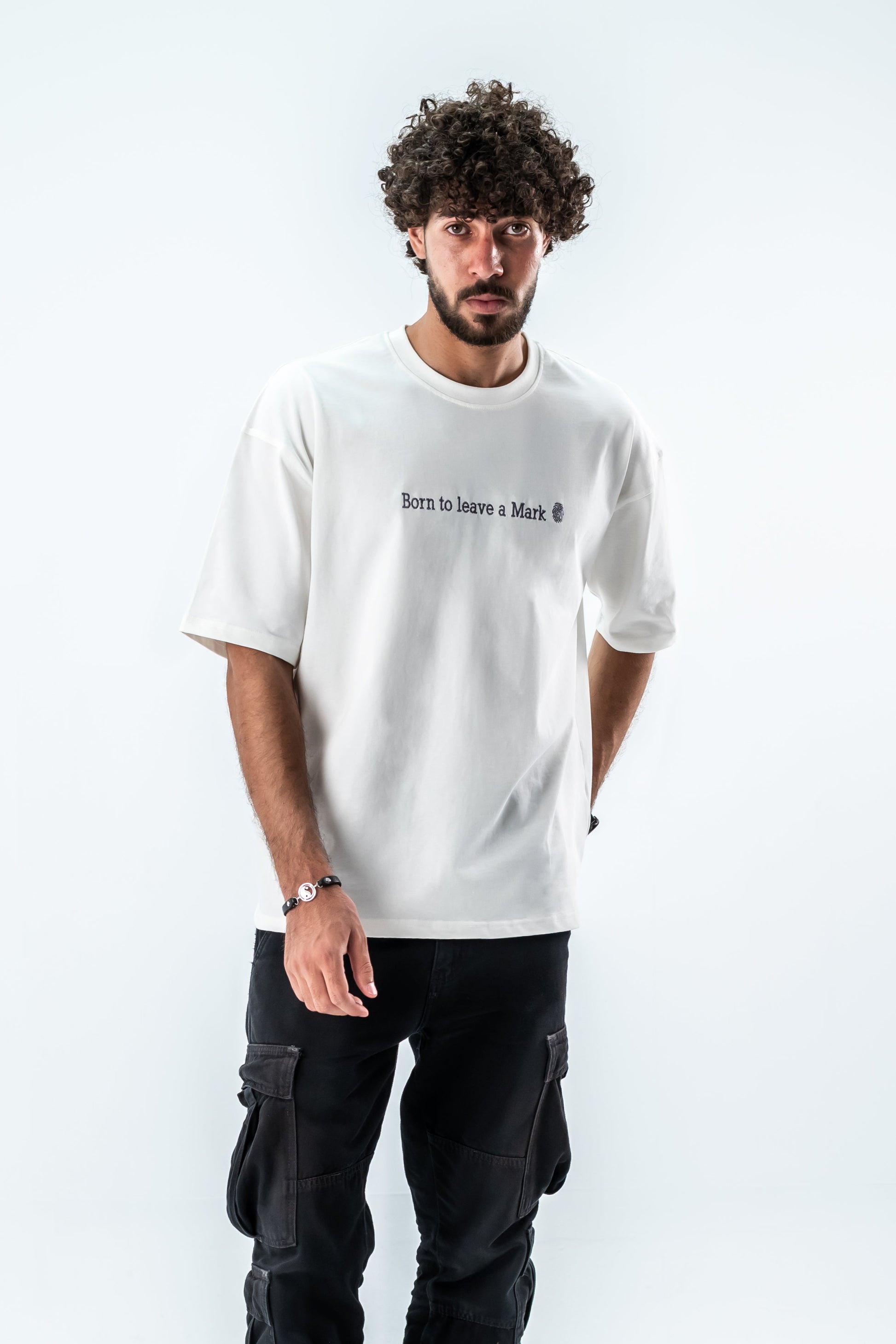 Oversized T-Shirt – “Born to leave a mark” Embroidered Design (white)