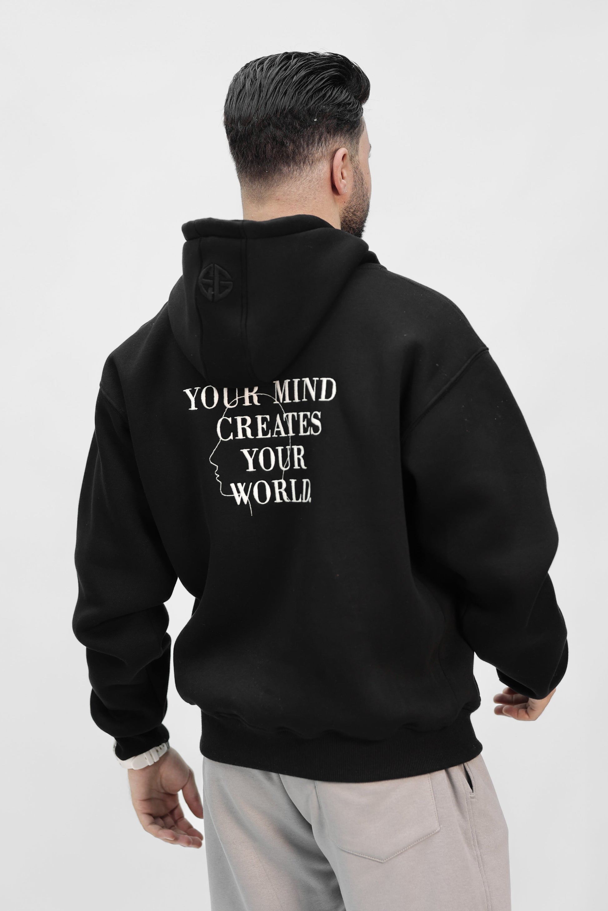 - Back Embroidery : Features a clean, finely embroidered “your mind creates your world” statement on the chest.